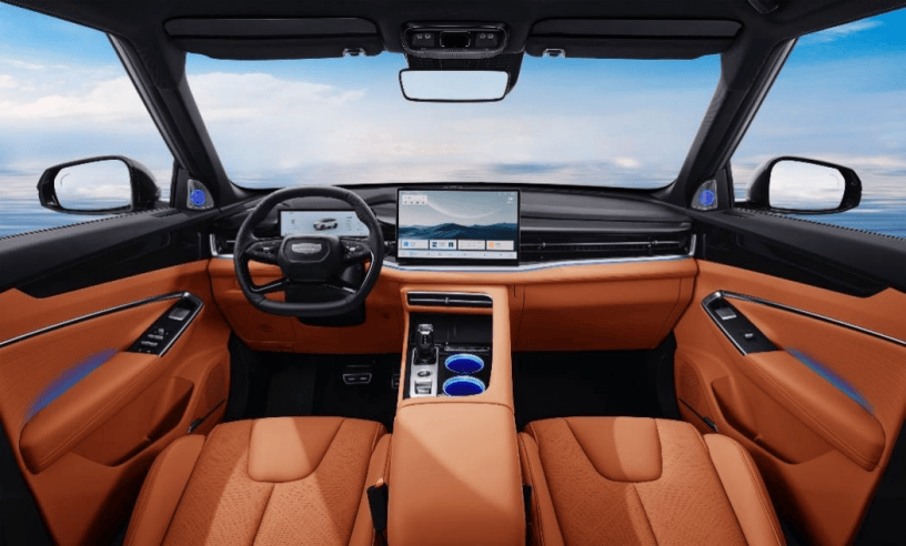 進(jìn)入車內(nèi),整體座艙延續(xù)了外觀的審美邏輯,沒有刻意追求科技感的堆砌,也沒有用復(fù)雜設(shè)計(jì)制造“豪華感”。吉利將“空間”作為核心,把江南園林中“回廊環(huán)繞”的格局引入座艙布局,強(qiáng)調(diào)的是環(huán)抱感和使用動(dòng)線的合理性。中控區(qū)域采用“拱橋”式設(shè)計(jì),在造型上做了包裹感的處理,但又保留了空調(diào)等高頻功能的實(shí)體按鍵,這是對(duì)實(shí)際使用體驗(yàn)的尊重。
