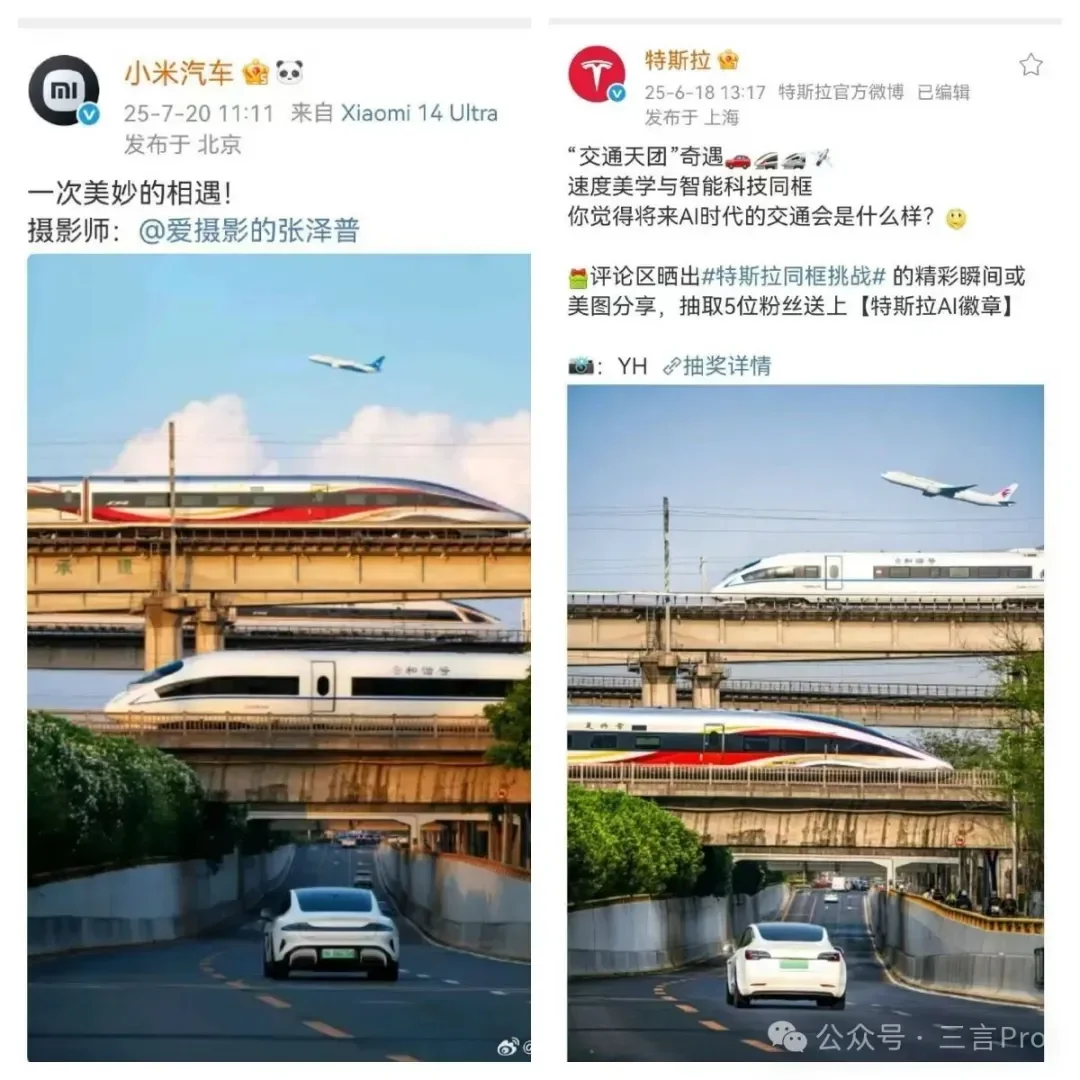 日前,小米汽車官方轉(zhuǎn)發(fā)了一張某攝影師拍攝的照片,但很快有網(wǎng)友指出其構(gòu)圖與特斯拉上個(gè)月發(fā)布的照片極為相似,引發(fā)討論。