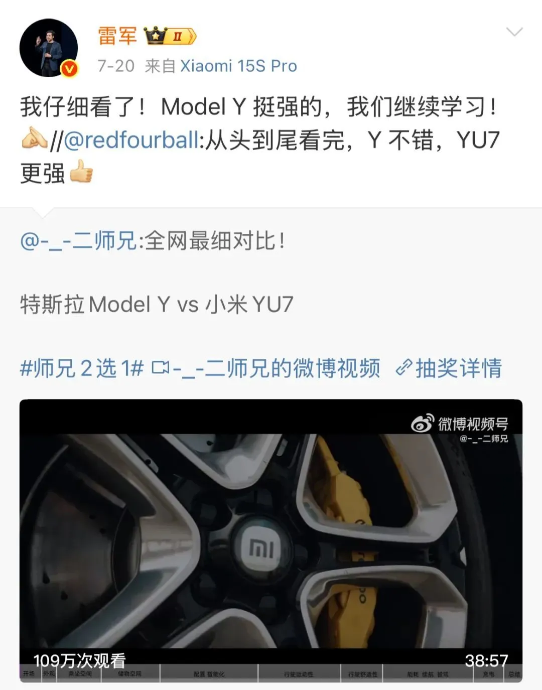 前天,雷軍看了特斯拉Model Y和小米YU7的對(duì)比視頻后,直言要向特斯拉繼續(xù)學(xué)習(xí)。