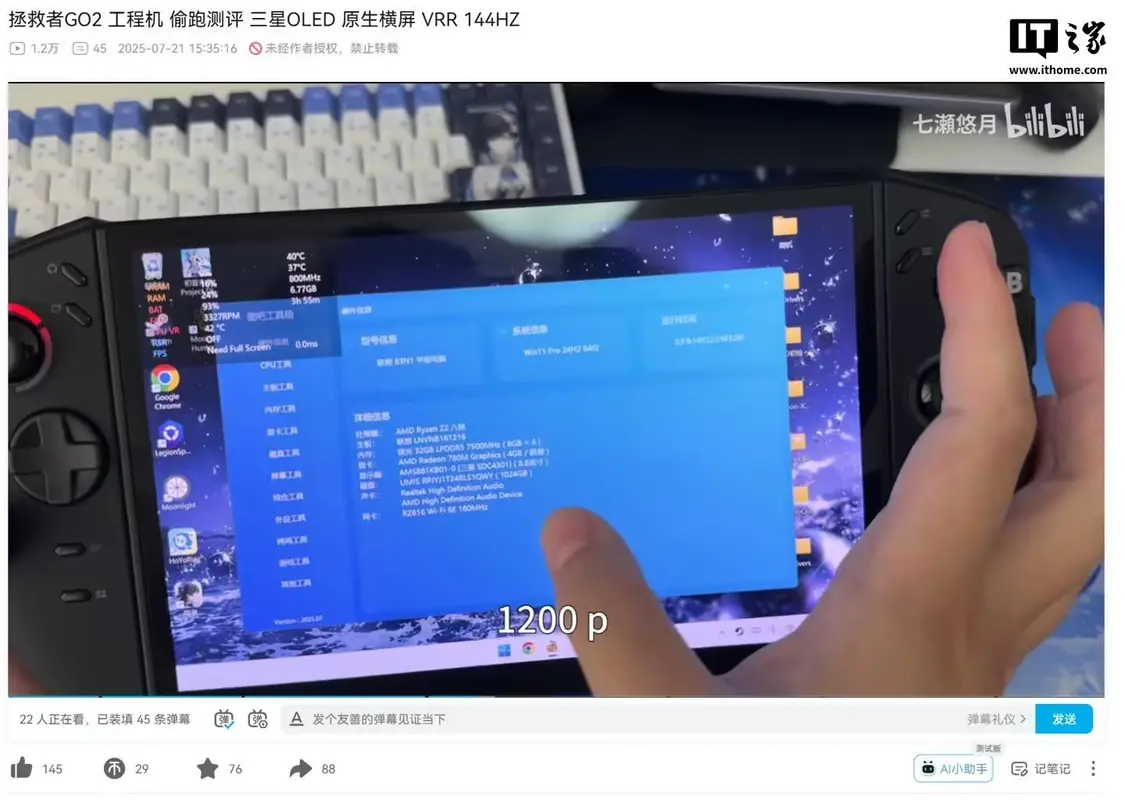 7 月 22 日消息,博主 @七瀬悠月 昨日在B站上手了尚未上市的聯想 Legion Go 2 掌機工程機,這款掌機相比量產機的最大區別是將原本的銳龍 Z2 Extreme 處理器換為了 Z2。