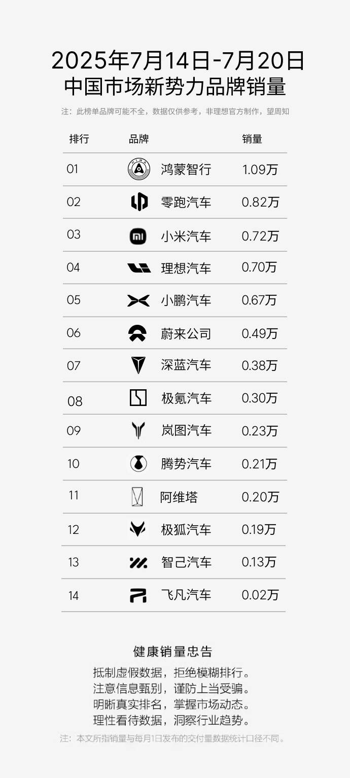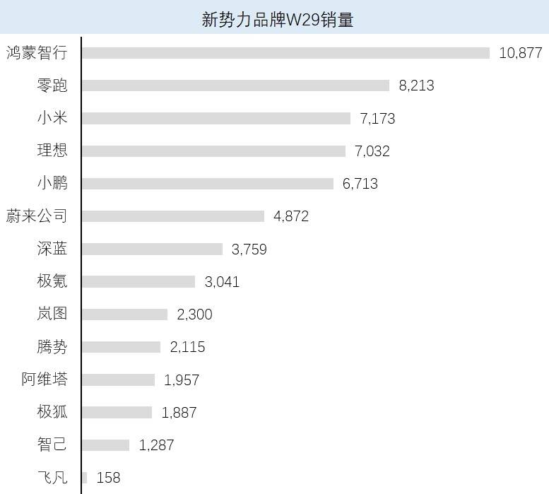 第29周新能源車企銷量出爐:新勢力僅鴻蒙智行破萬,淡季效應明顯