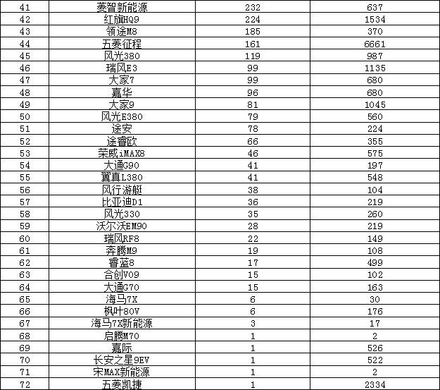 2025年6月MPV銷量排行榜(單位:輛)