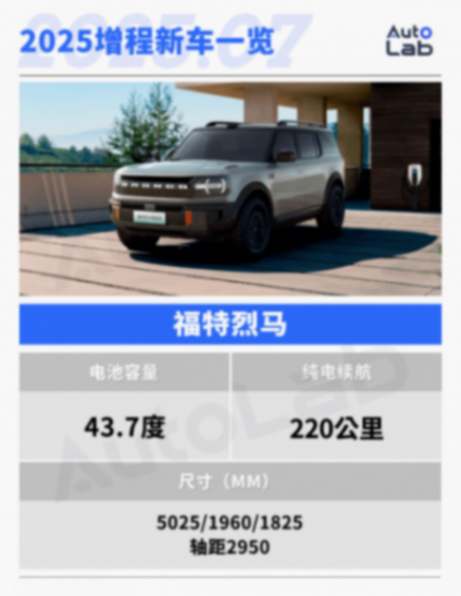 我們重點來看看增程版車型,和燃油車型不同,福特烈馬增程版是基于全新平臺開發(fā),搭載足足43.7度的電池包,CLTC純電續(xù)航220km,滿油滿電CLTC綜合續(xù)航可以達(dá)到1220km。