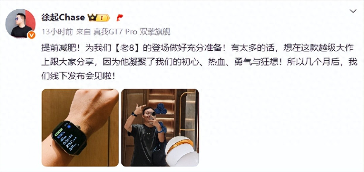之前K90 Pro已經有消息爆出來,近日就輪到了GT8 Pro,雖然負責人并未指名道姓,但既然是用GT7 Pro發出的消息,然后又用【老8】來稱呼下一代機型,很明顯徐起口中的【老8】就是指GT8 Pro,按爆料中的意思,新機發布前的準備工作正在有條不紊的進行。