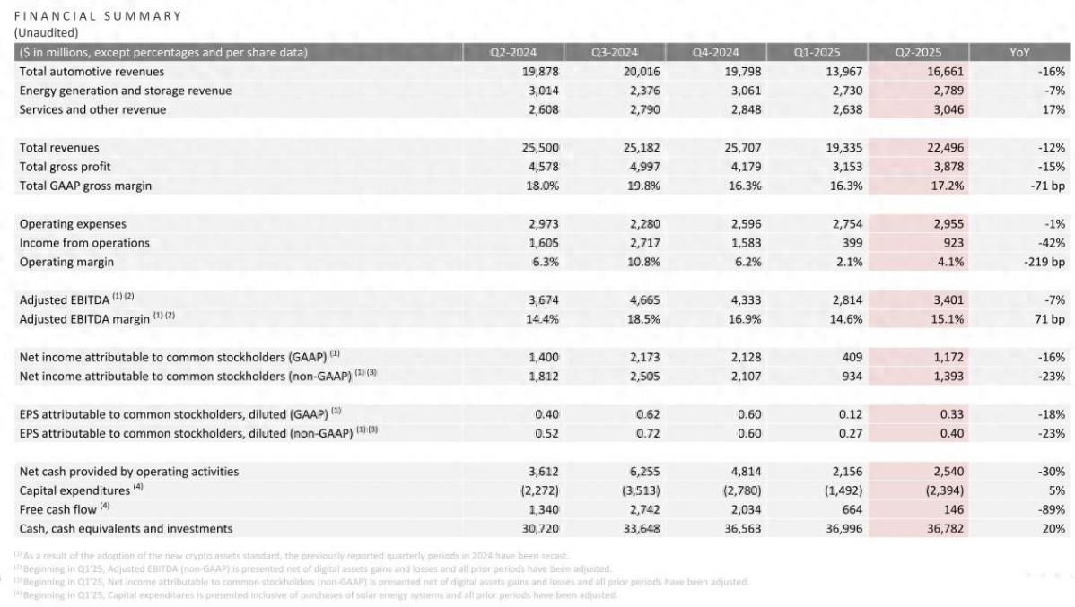 7 月 24 日消息,特斯拉今天公布了 2025 財年第二季度財報。報告顯示,特斯拉第二季度營收為 224.96 億美元(IT之家注:現匯率約合 1613.8 億元人民幣),與去年同期的 255.00 億美元相比下降 12%;歸屬于普通股股東的凈利潤為 11.72 億美元(現匯率約合 84.08 億元人民幣),與去年同期的 14.00 億美元相比下降 16%。