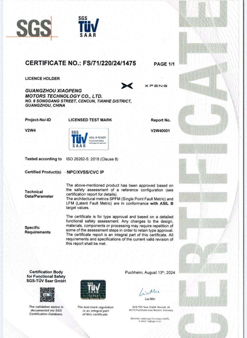7 月 24 日消息,小鵬汽車官方昨日發文介紹,小鵬 G7 Ultra 首發搭載的 3 顆圖靈 AI 芯片按國際車規級質量及安全標準設計,目前已通過 ISO26262 ASIL-B 功能安全認證,功能安全島符合 ISO26262 ASIL-D 最高等級標準,通過 AEC-Q100 可靠性測試標準,芯片生產流程符合 IATF16949(汽車供應鏈質量管理)標準要求。