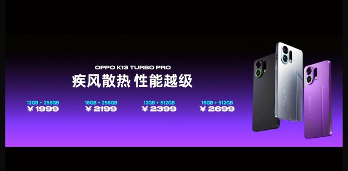 設計彰顯競速美學:Pro版提供騎士銀、初號紫、黑武士三色(標準版為騎士白/同色紫/黑),Pro背部更搭載疾風渦輪呼吸燈(8色可調),活力十足。高強度晶盾玻璃堅固耐用。價格誠意拉滿:K13 Turbo Pro (12+256GB) 僅1999元起(16+256GB 2199元,12+512GB 2399元,16+512GB 2699元);K13 Turbo (12+256GB) 1799元起(16+256GB 1999元,12+512GB 2299元)。全系7月25日10:00開售!