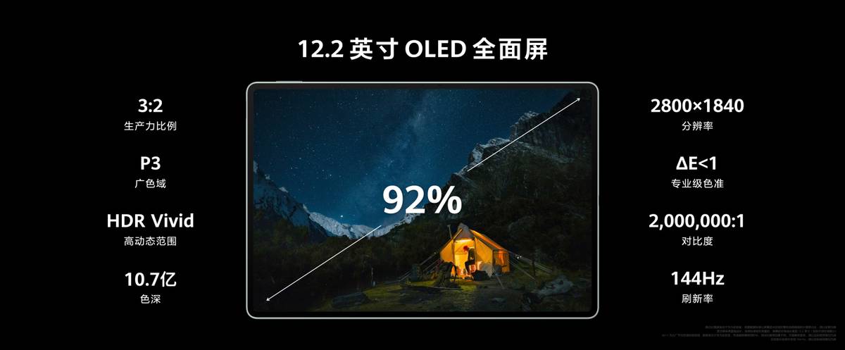 數(shù)字創(chuàng)作體驗(yàn)的核心之一在于屏幕。華為MatePad Pro 12.2 英寸搭載雙層OLED云晰柔光屏,采用創(chuàng)新的雙層OLED架構(gòu),結(jié)合全新 AI Pixel 光學(xué)引擎逐臺(tái)校準(zhǔn),峰值亮度高達(dá)2000nits,配合2,000,000:1對(duì)比度及2800×1840分辨率,即使在戶外強(qiáng)光環(huán)境下依然顯示清晰,色彩準(zhǔn)確。P3廣色域、ΔE<1的色準(zhǔn)水平,更為色彩敏感的創(chuàng)作工作提供了穩(wěn)定保障。