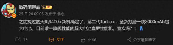 據悉,iQOO Z10 Turbo Pro+還將提升電池容量,有望達到8000mAh以上,成為iQOO史上電池最大的手機。