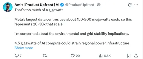 對于OpenAI擴大Stargate投資,網友表示,這吉瓦數也太夸張了!Meta 最大的數據中心每個耗電量約為 150-200 兆瓦,所以這相當于其規模的 20-30 倍。
