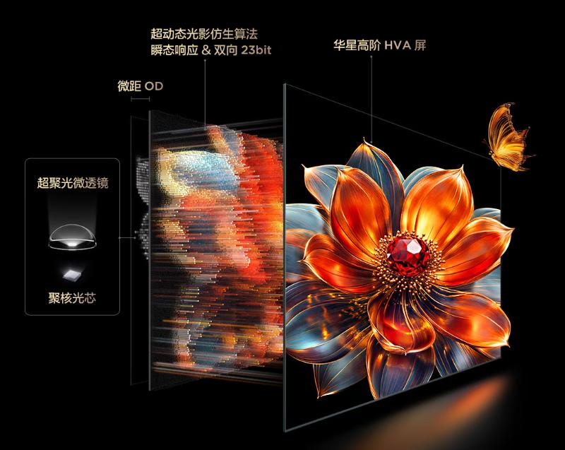 MiniLED作為高端電視核心技術(shù),曾陷入“分區(qū)數(shù)量競賽”誤區(qū),盲目增區(qū)導(dǎo)致成本飆升,還可能引發(fā)光暈、漏光等問題,陷入邊際遞減困境。TCL自研的萬象分區(qū)技術(shù)從背光到成像全鏈路七大環(huán)節(jié)創(chuàng)新,實現(xiàn)“一區(qū)頂多區(qū)”控光效果,用更少分區(qū)呈現(xiàn)更自然的明暗過渡。以旗艦機(jī)型Q10L系列為例,在萬象分區(qū)技術(shù)加持下,通過全套系統(tǒng)級的MiniLED控光方案,從背光到成像全鏈路實現(xiàn)技術(shù)突破,帶來卓越控光表現(xiàn)。在此基礎(chǔ)上,第四代液晶電視搭配蝶翼華曜屏擁有7000:1高對比度,是普通IPS屏的5倍,明暗細(xì)節(jié)表現(xiàn)實現(xiàn)質(zhì)的飛躍;再搭配1.8%的整屏反射率攻克強(qiáng)光環(huán)境下的反光困擾,全面提升觀看體驗,成為高端電視領(lǐng)域的佼佼者。