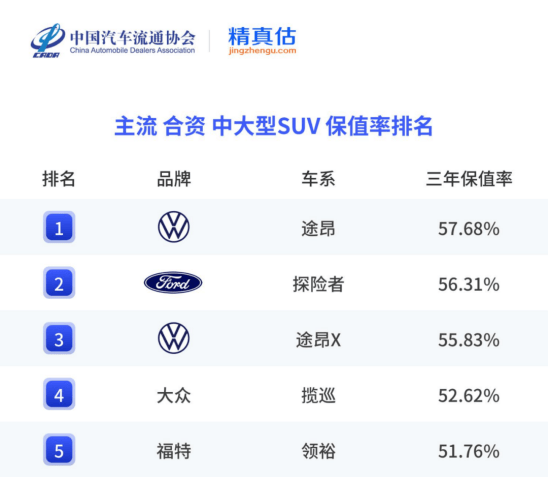 保值率是品牌產品力、認知度與美譽度的綜合體現,不僅對未來開展回購、置換、金融、新車定價等相關業務提供重要數據支持,也能為消費者提供購車決策參考。上汽大眾能在多個細分市場保值率榜單上名列前茅,是其產品綜合實力領先的證明。