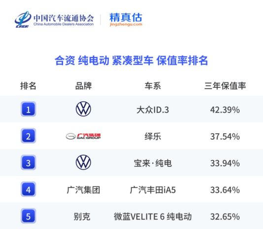 純電方面,ID.3作為保值率榜首的常客,2022年以來連續三年問鼎合資純電動緊湊型車一年保值率冠軍,將“好質量、好滿意、好保值”的口碑寫進官方榜單。今年,剛滿“三周歲”的ID.3又一舉獲得合資純電動緊湊型車三年保值率第一。自2021年上市以來,ID.3不僅將潮趣、智趣、駕趣多方面體驗拉滿,還秉承德系品質基因,通過硬核耐腐蝕測試、338項品牌標準電池安全驗證等,為消費者打造“純電三好生”。今年4月,上汽大眾ID.3還在首批純電動乘用車能效分級測評中獲得"一級能效"認證,進一步提升產品“含金量”。