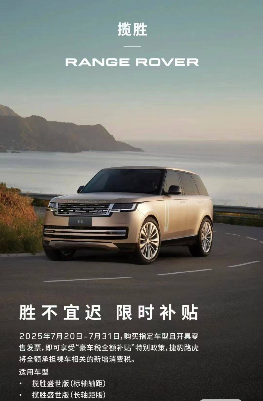當然,也正是這份“底氣”,讓捷豹路虎在面臨突發(fā)問題時有實力應對。比如近日中國市場針對超豪華小汽車消費稅起征點下調至90萬元(不含增值稅)的新政,捷豹路虎就第一時間拿出了“真金白銀”來補貼消費者:凡在7月20日至7月31日期間購買指定車型并開具零售發(fā)票的消費者,其新增的裸車相關消費稅由捷豹路虎全額承擔。捷豹路虎的“豪氣”在這一刻表現(xiàn)的淋漓盡致。