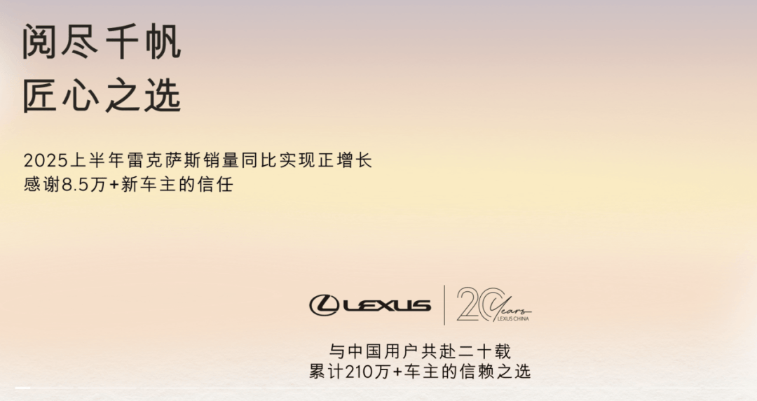 回顧2025上半場,豐田穩(wěn)健向好的銷量成績背后,是靜水深流的戰(zhàn)略蓄力,是放眼奔流永續(xù)的跨周期布局。下半年,備受期待的雷克薩斯全新一代ES、鉑智7將釋放更多關(guān)鍵信息,持續(xù)刷亮豐田的品牌印記。