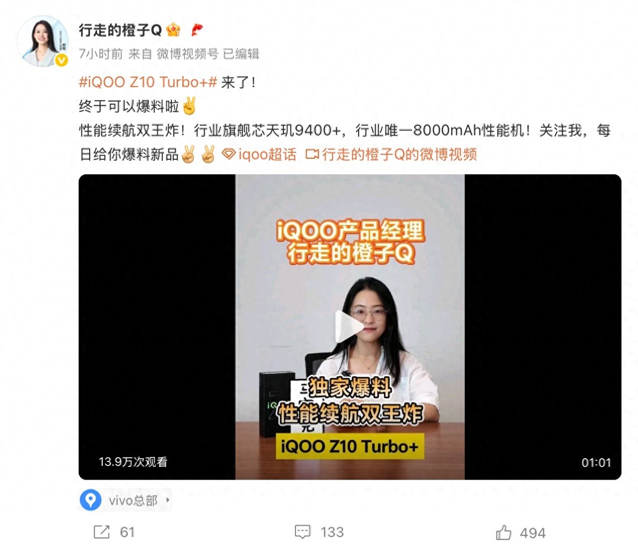 7 月 25 日消息,iQOO 產品經理邢程在其個人微博@行走的橙子Q 上發布了關于 iQOO Z10 Turbo+ 的視頻,表示這款機型將同時具備優秀的續航能力以及強大的性能表現。
