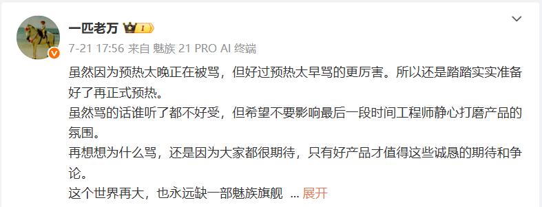 面對網友對預熱太晚的質疑,魅族萬志強也發文回應稱 “魅族 22 已進入最后打磨階段”,暗示發布窗口臨近。不少網友直呼,熟悉的魅族又要回來了。為此,不少魅友更加期待魅族22系列的發布。