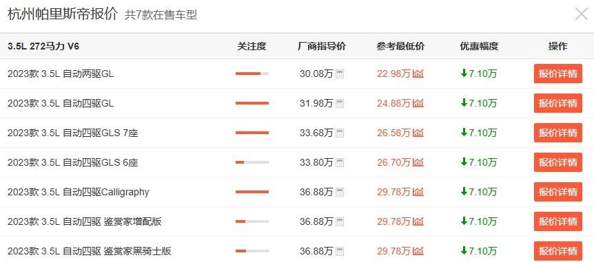 其實(shí)國(guó)人對(duì)現(xiàn)代旗下的帕里斯帝這車好感度挺高的,為啥這么說(shuō)呢?因?yàn)檫@臺(tái)車不僅給到了3.5L V6的發(fā)動(dòng)機(jī)和8AT變速箱,還是一臺(tái)車長(zhǎng)將近5米、軸距達(dá)到2900mm的七座中大型SUV。再加上目前新車終端能優(yōu)惠4~7萬(wàn),等于說(shuō)裸車最低只需要23萬(wàn)就能買,這就又提升這車的性價(jià)比與好感度。