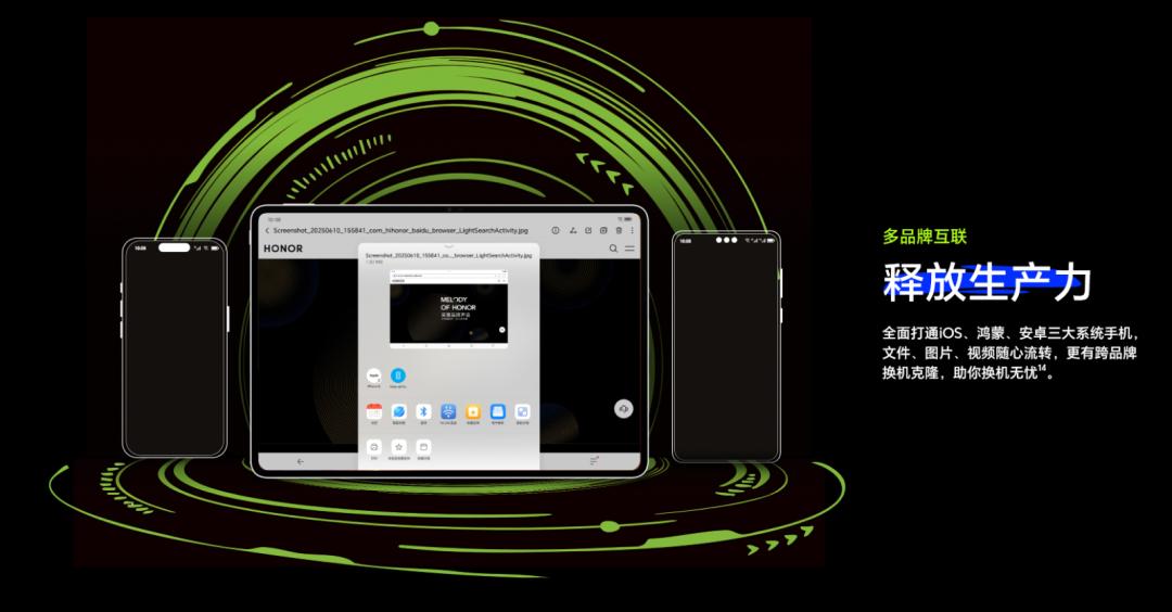 榮耀互聯(lián):支持“三大生態(tài)互傳”,方便你在榮耀設(shè)備與其他品牌手機、平板、PC間高效傳輸文件。