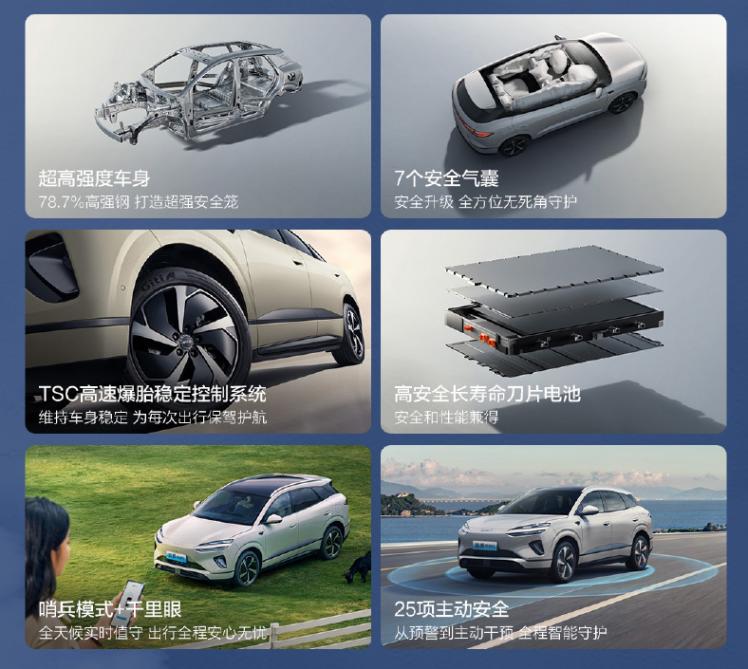 其三款配置都是后驅電機,170kW功率,CLTC綜合工況純電續駛里程520km和605km。電池容量65.28kWh和78.72kWh。直流充電最大功率為195kW和237kW,30%-80%電量只需要18分鐘。采用了e平臺3.0 Evo,百公里能耗低至12.5kWh。