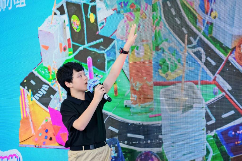 在發(fā)布環(huán)節(jié)上,孩子們自信地展示了團(tuán)隊(duì)共同完成的“未來城市”模型,并分享了他們對(duì)于“守護(hù)安全出行,共創(chuàng)美好未來”的愿景。這些“未來城市”不僅是孩子們天馬行空創(chuàng)意的結(jié)晶,更是他們對(duì)未來智慧出行的探索。