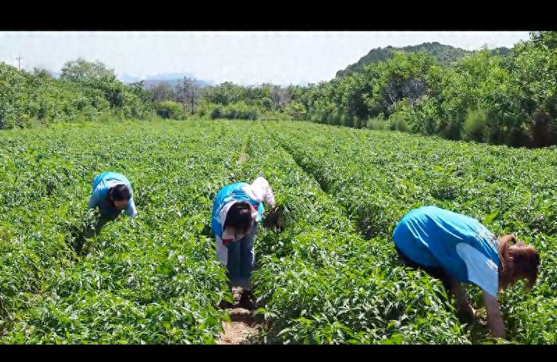 中國(guó)社會(huì)科學(xué)院大學(xué)“川行覓知”實(shí)踐團(tuán)在水峪村科技小院的辣椒田進(jìn)行勞作。受訪者供圖
