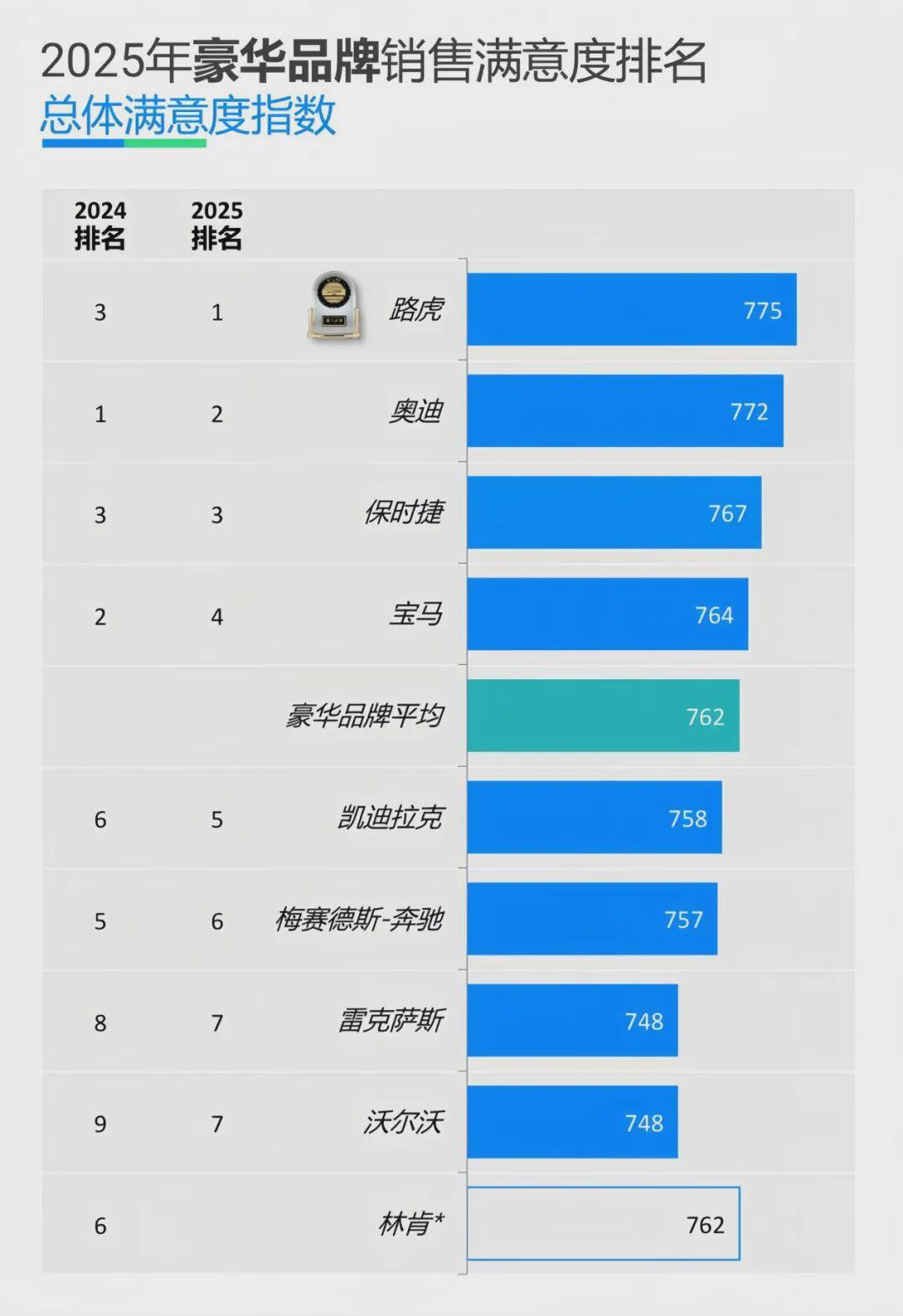 至于捷豹路虎為何能做到如此?7月24日,全球領先的消費者洞察與市場研究機構J.D.Power|君迪發布的2025中國銷售服務滿意度研究SM(SSI)給出了一部分答案,路虎以775分(滿分1,000分)的亮眼成績登頂豪華品牌榜首,創下該研究近五年豪華品牌的最高得分。