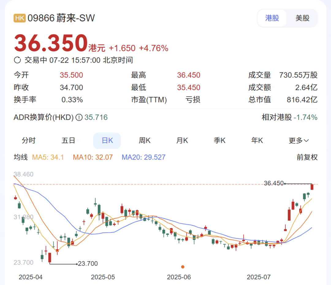 自從L90發布以來,蔚來汽車(09866.HK)的股價一改頹勢,自低點已經上漲了近30%。