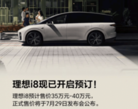 在L90預售一周后,7月17日,理想汽車官方宣布,中大型六座純電SUV正式開啟預訂,預計售價35萬至40萬元,正式售價將于7月29日發布會公布。