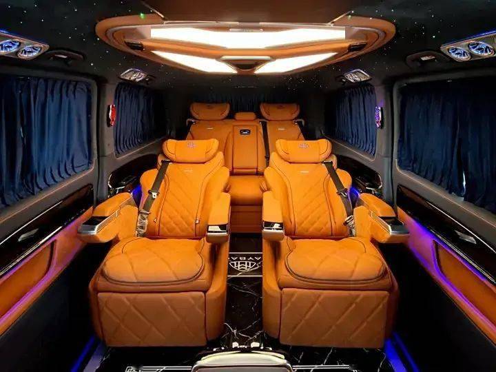 這款車的重點是,超過3米4的軸距為它帶來了無限可能,這才是威霆不同于其他MPV的地方。內部空間可以隨意發揮,游艇地板、航空座椅、屏幕墻、影音系統、酒柜吧臺等等,走奢華路線,給你無限的“折騰”空間,再加上奔馳品牌的加持,開出去都是百萬級別的氣質。