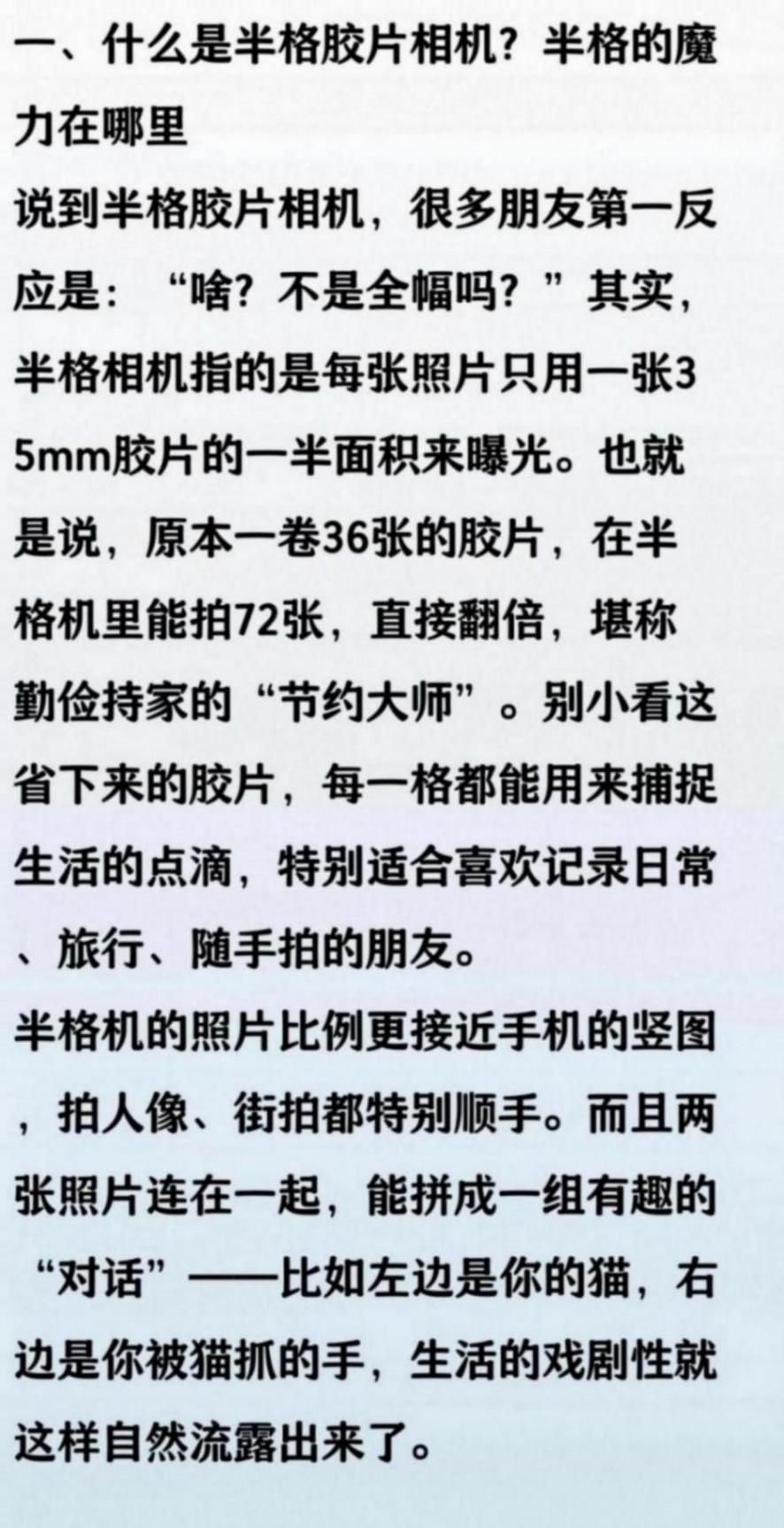 說到半格膠片相機,別看畫面只占了普通相機的一半,拍出來的樂趣可是一點沒少。省膠卷、拍得多,還能玩出各種拼接和故事感。我用過三臺半格機,每臺都有自己的小脾氣,也帶來了不一樣的驚喜。今天就跟大家聊聊,這些“小玩具”到底哪里有意思,值不值得入坑。