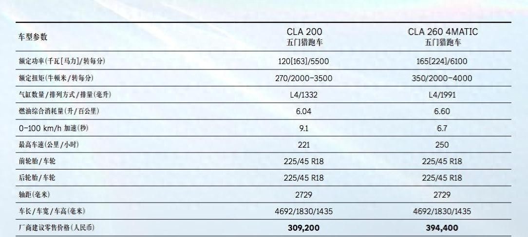 奔馳家的新款CLA五門獵跑車開賣了。就兩款。最便宜的那個,賣三十萬九千二,和過去一樣。頂配的那個呢,原來賣三十九萬四,現在漲了四百塊,賣三十九萬四千四。