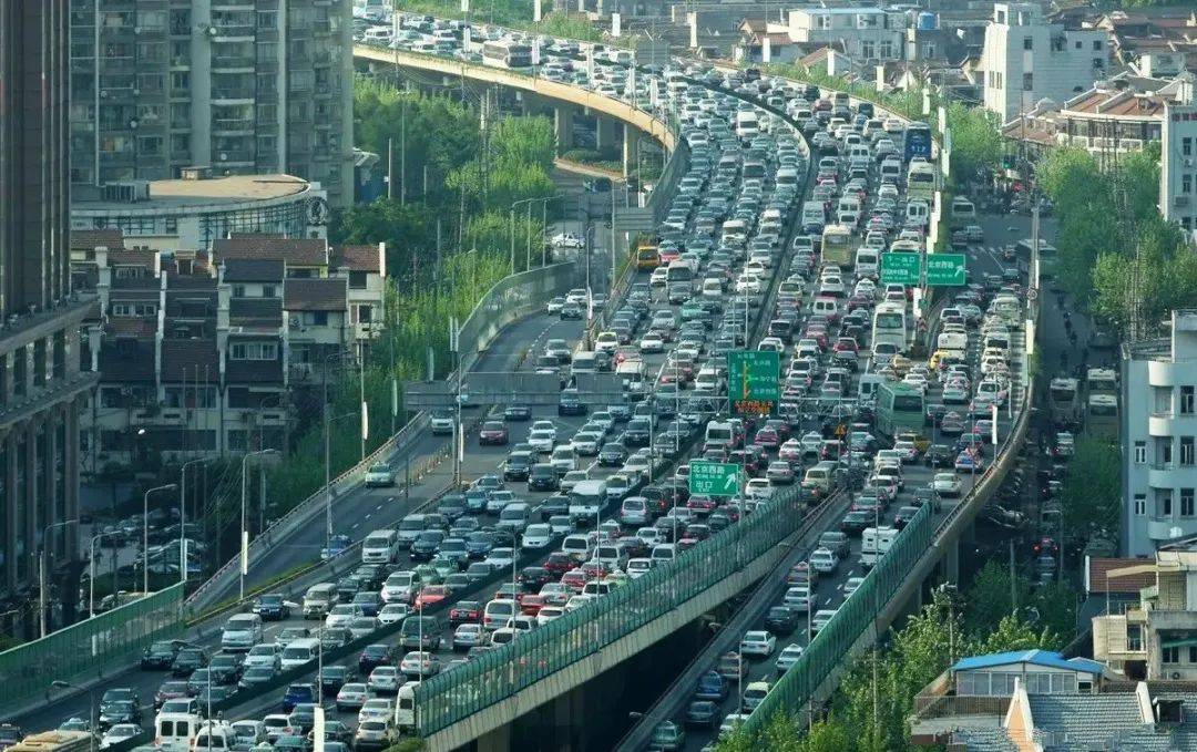 圖丨圖為上班高峰期的上海高架