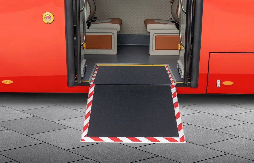 車輛前、中雙開的氣動內擺門,配合便利的低入口設計+通道平地板設計,讓攜帶行李的游客、老人和兒童都能輕松、安全地上下車,彰顯人文關懷。