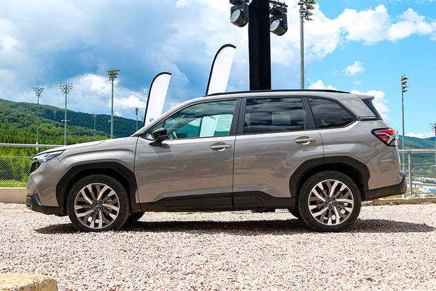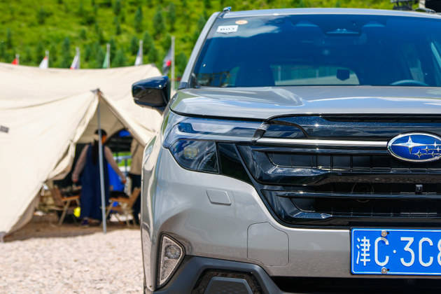 全新森林人前臉采用外擴式翼子板,強化了越野氣質。熏黑的橫幅式中網加入一根貫穿式鍍鉻飾條,再搭配細長LED燈帶與熏黑大燈組,既保留了斯巴魯家族的辨識度,又賦予其侵略性的越野氣質。