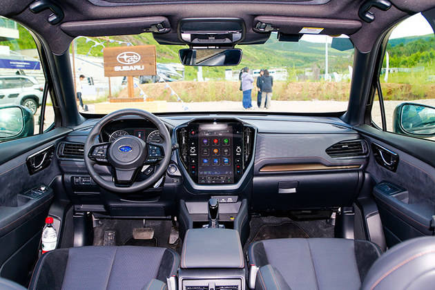 我們此次試駕也進行了一段非鋪裝路段體驗,畢竟是森林人,森林這種戶外場所才是它的主場。全新森林人基于斯巴魯全球化平臺(SUBARU GLOBAL PLATFORM)打造,配合車身的整體框架結構(Full Inner Frame),通過擴大粘合劑應用范圍及提升懸掛安裝部件剛性,車身剛性顯著提升,使車輛在各種路況下都能保持穩定操控。