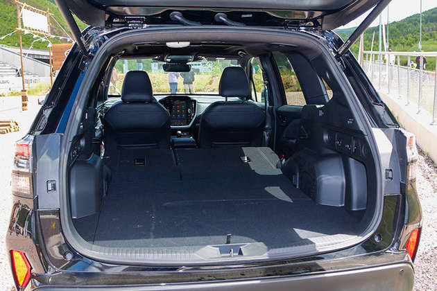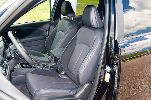 皮質座椅采用奧司維科技面料,座椅寬大舒適,并且支撐度十分優秀。全新森林人的空間表現非常優秀,筆者身高183cm,前后排頭部空間均可以達到一拳有余,并且后排可以從容蹺二郎腿。此外,新車前后排還均提供了座椅加熱功能。