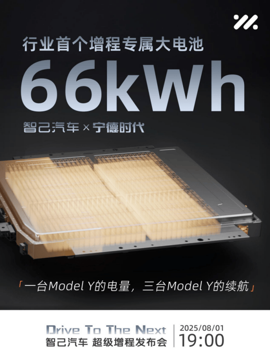 首先,智己超級增程的電池是智己與寧德時代共同打造的增程專屬大電池,容量為66度,這個電池容量講真的已經比Model Y后輪驅動版上的62.5度電池要大了,智己宣稱它有一臺Model Y的電量,三臺Model Y的續航,也就意味著滿油滿電狀態下,智己超級增程系統綜合續航里程起碼得是1500km往上。