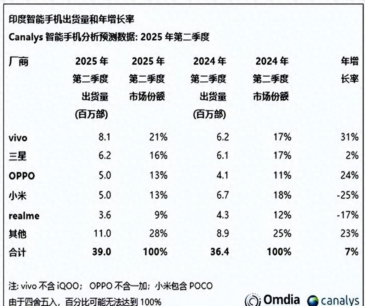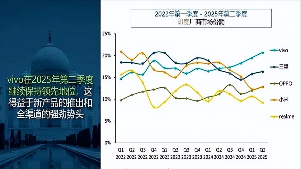2025年Q2印度手機市場大洗牌,中國廠商包攬前三,蘋果高價策略遭冷遇。