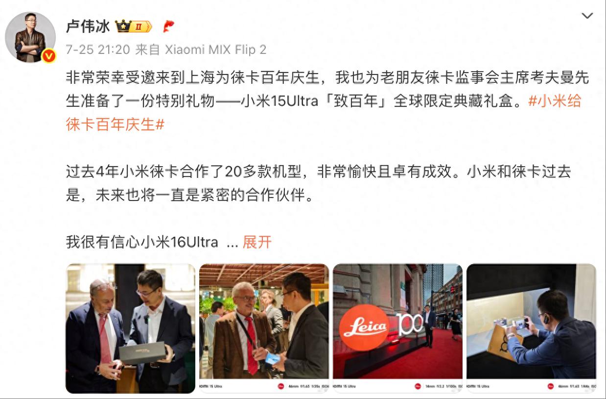 最近小米品牌總經(jīng)理盧偉冰發(fā)布表示,過去 4 年小米徠卡合作了 20 多款機(jī)型,非常愉快且卓有成效,未來小米和徠卡也將一直是緊密合作伙伴,我很有信心小米 16 Ultra 將會(huì)是移動(dòng)影像的新高度。