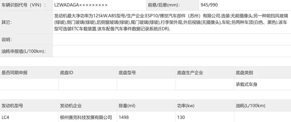 最后是動力,從申報信息來看,五菱星光560的燃油版是搭載五菱全新動力總成的核心成員,LC4系列1.5T發動機,其最大功率為130kW。
