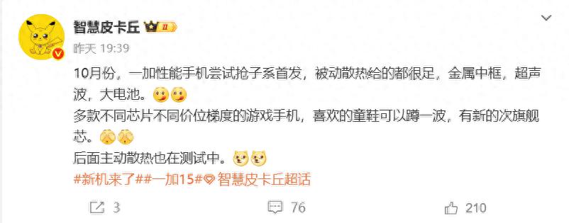 機哥我剛刷到智慧皮卡丘和數(shù)碼閑聊站的最新爆料,一加這次是真拼了,10月份將會提前將一加15和一加Ace6兩款手機,一同發(fā)布。