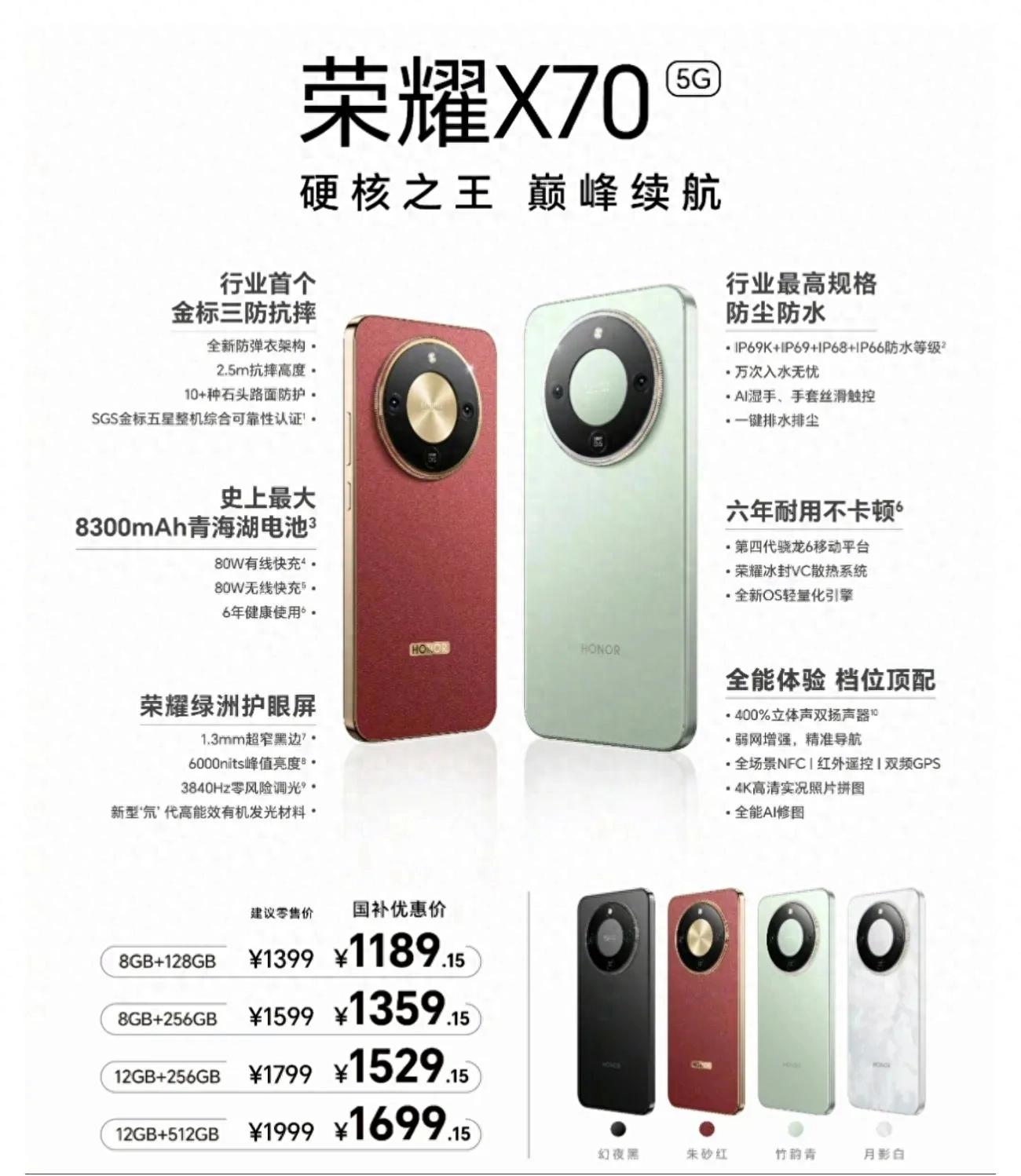 配備了8300mAh超大電池,頂配版80W無線閃充,并且十面抗摔,高規格防塵防水,很適合送長輩與戶處的小伙伴們。