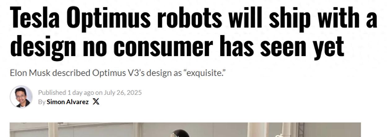 而在2025年第二季度財報電話會議上,馬斯克澄清說,當Optimus投入量產時,這款人形機器人將采用其V3版本的設計。這意味著,即將交付給特斯拉首批消費者的Optimus機器人將采用與該公司自2023年以來一直在使用的Optimus V2機器人不同的設計。