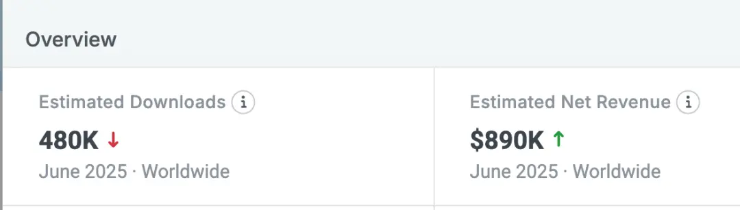 世超查了最新數據,這個 App 在今年 6 月依然保持著 89 萬美元的月收入,穩得一批。