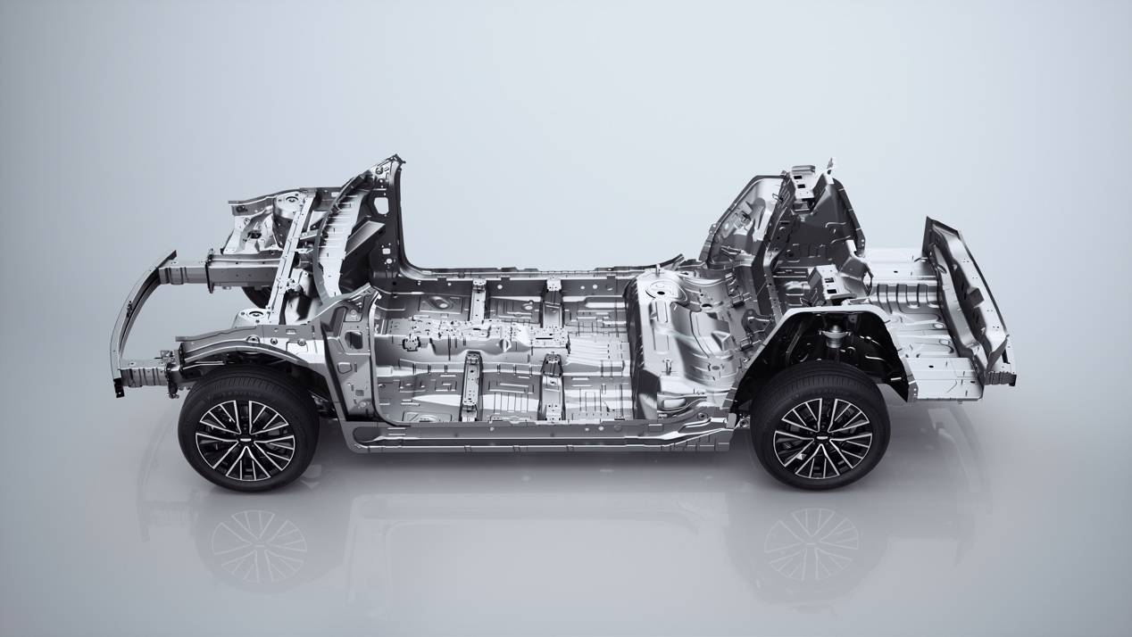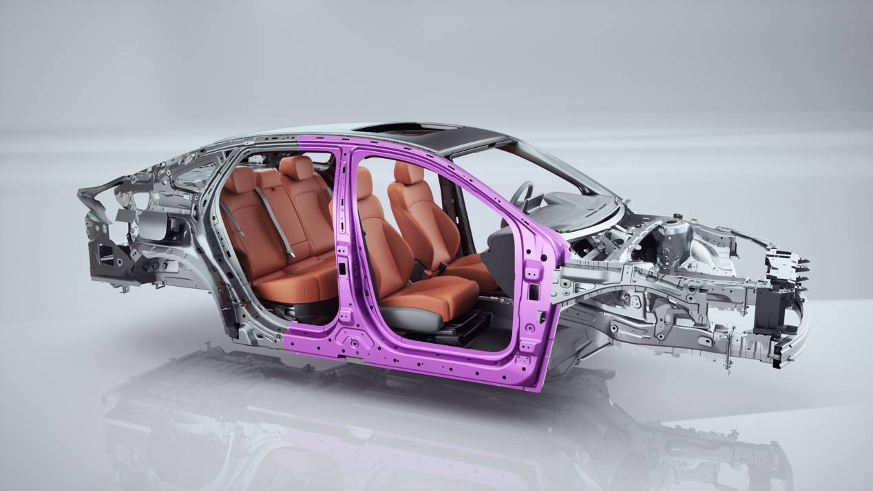 在前機(jī)艙區(qū)域:“B”字型截面的超高強(qiáng)鋼防撞梁、240mm的超長吸能盒,加上可S折彎的縱梁,可按預(yù)設(shè)路徑有序潰縮變形,充分吸收碰撞能量;而同級(jí)獨(dú)有的發(fā)動(dòng)機(jī)下沉技術(shù),則能在碰撞過程中帶動(dòng)發(fā)動(dòng)機(jī)向斜后方下沉,避免入侵乘員艙,為乘員爭(zhēng)取更多的生存空間。