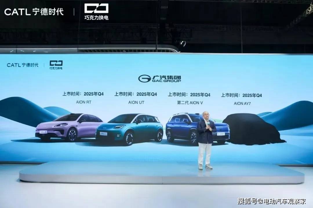 這一合作也早有前兆。2025上海國際車展上,寧德時代攜手中國一汽、長安汽車、北汽集團、奇瑞汽車、廣汽集團五大車企,共同發布10款巧克力換電新車型。其中,和廣汽集團能合作的車型是四款車:埃安 UT、埃安 RT、埃安 V 霸王龍與一款即將上市的 A 級 SUV。根據當時宣布合作時間表,在四季度上市,并且和“國民神車”最為匹配的車型,無疑是埃安UT。