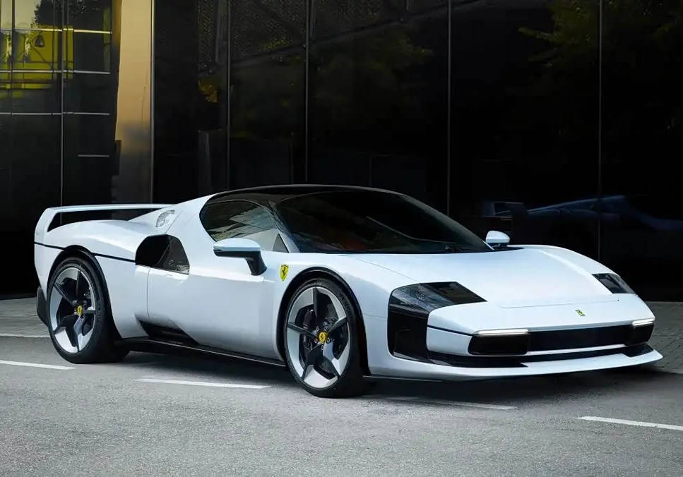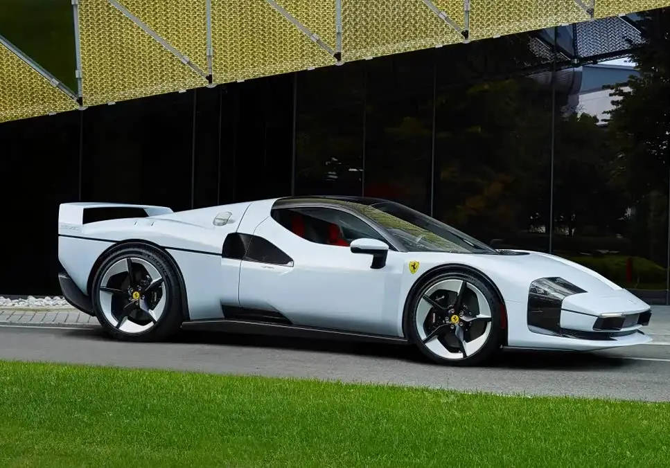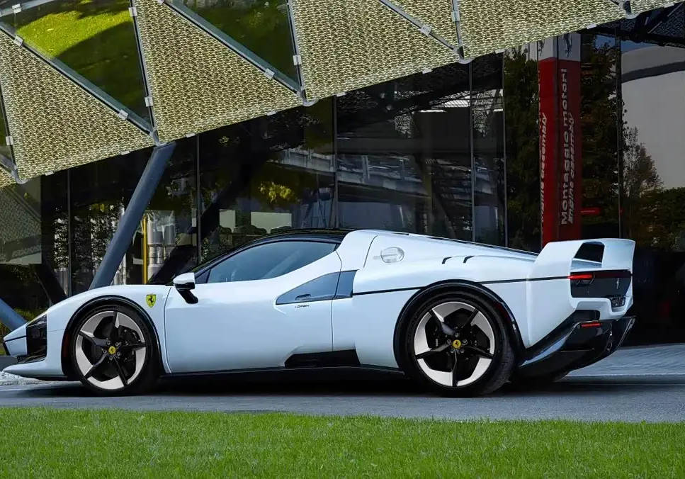 前翼子板末端采用方形輪廓設計,可優化底盤氣流穩定性;車門及后翼子板上的巨型三角形中冷器進氣口,則借鑒了品牌經典的NACA導管設計,兼顧散熱需求與歷史傳承感。值得注意的是,新車未沿用傳統的“法拉利紅”Rosso Corsa配色,而是采用專屬定制的Bianco SC40珍珠質感白色漆面,搭配流暢的車頂線條與圓潤的輪拱曲線,既保留經典影子又彰顯現代氣質。