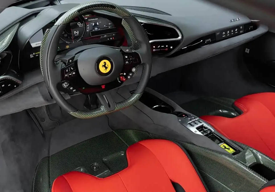 動力系統方面,SC40延續296 GTB的技術配置,搭載2.9升雙渦輪增壓插電式混合動力V6發動機,系統綜合輸出功率達819馬力,峰值扭矩740牛·米,0-100km/h加速僅需2.9秒。目前官方尚未透露是否對動力系統進行額外調校,但基于296 GTB成熟的動力架構,其性能表現已躋身超跑前列。