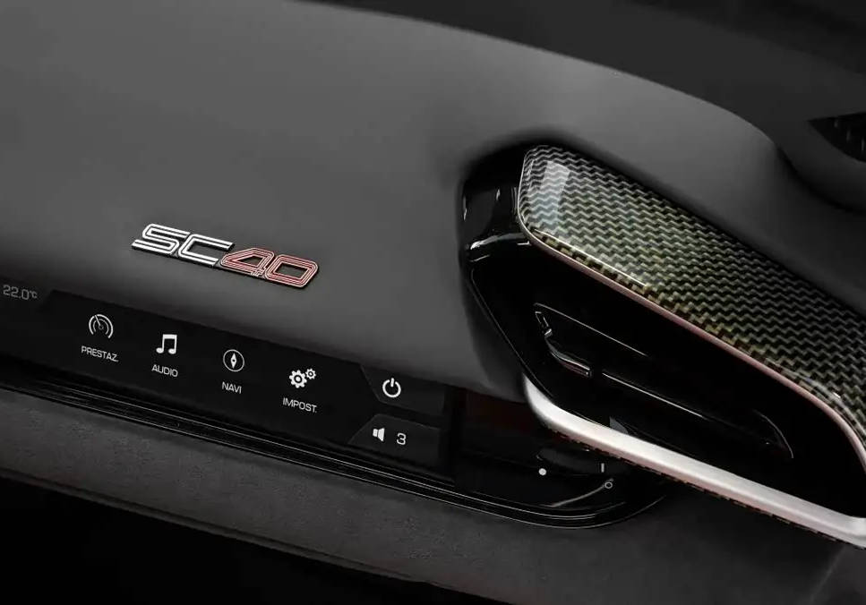 外觀設計上,SC40大量汲取1980年代經典元素,同時注入現代美學基因。新車配備醒目且具備空氣動力學功能的固定型垂直籃式尾翼,車身顯著位置鐫刻“SC40”浮雕標識以彰顯專屬身份。前臉采用低位、寬間距的頭燈布局,且頭燈被直接安裝于引擎蓋上,重現F40時代的復古韻味,不過摒棄了原版的鏟形前鼻,轉而采用更復雜的曲面結構,風格與、849 Testarossa的前部設計理念相近。